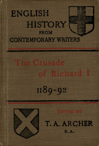 | العنوان | The crusade of Richard I: 1189-92 : extracts from the Itinerarium Ricardi Bohâdin Ernoul Roger of Howden Richard of Devizes Rigourd Ibn Alathir Li livres Eracles &c |