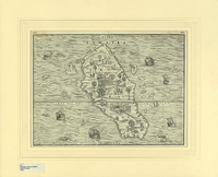 This fine woodcut map of Sumatra is the first separate map of an Indonesian island to be based on actual empirical data. It is based on the Ramusio's 'Raccolta di Navigationi et Viaggi'. In the book was an account of the voyage of the Parmentier Brothers, Frenchmen who ran the Portuguese blockade of the East Indies and landed on the west Sumatran coast. Both brothers died of fever and their crew did not acquire a great deal of wealth, which dissuaded the French from sending further expeditions. Prior to Ramusio's map, Sumatra had been confused with Sri Lanka and maps of the island contained conjectural geography based primarily on Marco Polo. The map is oriented with south at the top and the shape of the island and many of its features are quite accurately portrayed. However, there is no attempt to show any part of the Malay Peninsula or Java, although several of the surrounding small islands, such as Bancha (Banca) are shown. Charming scenes in the interior show vegetation, animals, and native figures at work and play, and there are numerous ships and creatures in the sea., First published in Giovani Battista Ramusio's Delle navigatione et viaggi., Relief shown pictorially., Oriented with north to the bottom., Page numbers on top margin of sheet: 433, 434., Main Heritage Compact General, HC.MAP.00231, Print Map, Item-ID: i11400493, BIB-ID: 1843418 |