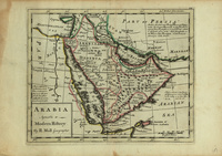 This hand-colored engraved map was first published in "Atlas Manuale A New Set of Maps of All Parts of the Earth" during the early part of the 18th century. Herman Moll was one of the foremost map publishers in England at this time. This highly detailed yet small map covers Arabian Peninsula eastward to the Persian Gulf and northward to Iraq and Desert of Syria, and the Red Sea region including part of Africa. It is a clear and attractive cartographic document that shows physical features, settlements, caravan trails, and tribal affiliation., by H. Moll, geographer., Relief shown pictorially., Main Heritage Compact General, HC.MAP.00083, Print Map, Item-ID: i11401473, BIB-ID: 1822137, Herman Moll was born in 1654 of German descent. He first came to London to work as an engraver for several publishers, and in the late 1670s set up his own business publishing atlases as well as maps of all parts of the world. His earliest known cartographic work is a series of small maps for the geography book of Sir Jonas Moore, published in 1683. Over the next fifty years he produced numerous works on classical, British and foreign geography, illustrated with maps of varying scales and detail yet in clear, distinctive style. Though his later work lacks the flamboyance of earlier productions, it is nevertheless still very pleasing to the eye. Molls best known works are the maps he produced for his folio atlas "The World Described", first published circa 1715. Perhaps Molls most famous map is the "New and Exact Map of the Dominions of the King of Great Britain on Ye Continent of North America", depicting the English colonies along the east coast. The map is more popularly called the Beaver Map after its attractive vignette scene of beavers building dams. His other works include the "Atlas Manuale" (1709), the "New and Complete Atlas" (1719), the "Atlas Minor" (1729) and "Atlas Geographus" (1711-17) in five volumes., Names of the places in English, and some are in Latin language. |