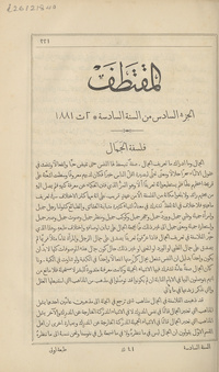 | الوصف | بدأ: السنة الاولى <1876>؛ توقف عن الصدور: المجلد 121, نشرت في القاهرة (1884ـ1952), منشئيها: يعقوب صروف، فارس نمر, ترقيم الصفحات مستمر سنويا, يشتمل على كشافات, Main Heritage Shelves General, Q1 .M87 Vol.6; No.6; 1881, Journal, Vol.6; No.6; 1881, Item-ID: i26121840, BIB-ID: 1845461, Vols. for 1896-1952 called al-mujallad., Also issued online. |