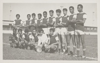 الراشد، حسن علي, مفلح، عبدالله, شريف، علي, ناصر، محمد, الجبر، سلطان, درويش، ناصر, قاسم، أحمد, خلف، علي, نعمة، ابراهيم, سلطان، ماجد, المعضادي، يعقوب, النادي الجسرة الرياضي., Al-Jasrah SC (Soccer team), Soccer players, Soccer players--Qatar--Group portraits, Soccer teams, Soccer teams--Qatar--Photographs