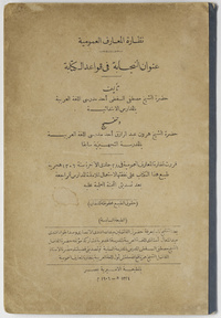 | Description | تأليف حضرة الشيخ مصطفى السفطى أحد مدرسى اللغة العربية بالمدارس الابتدائية ؛ تنقيح حضرة الشيخ هرون عبد الرزق أحد مدرسى اللغة العربية بالمدرسة التجهيزية سابقا., Main Heritage Shelves General, PJ6127 .S24 1906, Book, Item-ID: i23591419, BIB-ID: 2517084 |