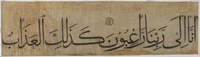 یتضمن هذا المخطوط سطرًا واحدًا من آخر الآية 32 وبداية الآية 33 من سورة القلم: "إنا الى ربنا راغبون. كذلك العذاب". ویُعد أصل المصحف من أضخم ما وصلنا من مخطوطات المصاحف حجمًا، فمقاس الصفحة فيه نحو 170 × 50 سم. وهو منسوب إلى عمر الأقطع، استئناسًا بما أورده حبيب أفندي (في "الخط والخطاطون" ص 336) أنه كَتب مصحفًا كبير الحجم لتیمورلنك (ت 807 أو 808 هـ) الذي استحسنه للغاية، وقيل أنه كُتب لحفيده الأمیر بایسنقر (ت 837 هـ)., Main Heritage Display General, HC.MS.2017.0063, Manuscripts, Item-ID: i2493219x, BIB-ID: 2668216, اللغة العربية؛ الخط المحقق |