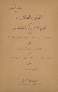 | Title | الحكمان الصادران من المجمع الاكلير يكي العام المقدس الأول في يوم الأُنين 10 مسري ستة 1636 الموافق 16 أغسطس سنة 1920 على الأنبا باسيليوي مطران كرسي أبو تيج. والثاني في يوم الخميس 13 مسري سنة 1636 الموافق 19 أغسطس سنة1920 على الفمص مرقس سرجيوس |