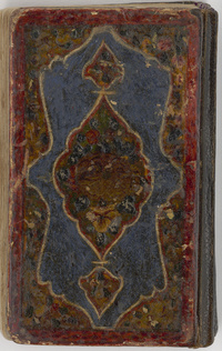Arabic manuscript on paper, 15ll. of tiny black naskh, sura headings in red on gold and illuminated panels, opening bifolio with gold and polychrome illumination, later attribution to Yaqut al-Must'asimi and added dated of 673, in lacquer binding, 2 silk wallets, silk covered carrying case with strap., North India, 19th Century, اعتمدت هذه التسجيلة المؤقتة على الفهرسة الأولية السابقة للمجموعة., Main Heritage Shelves General, HC.MS.02488, Manuscripts, Item-ID: i24977548, BIB-ID: 2670462 |